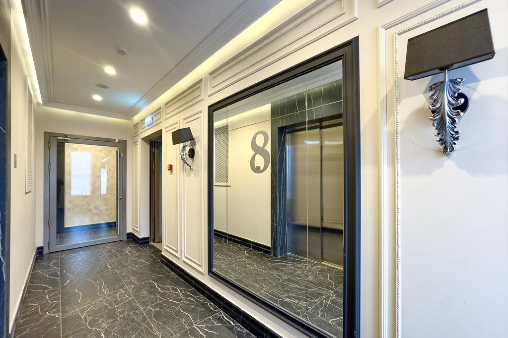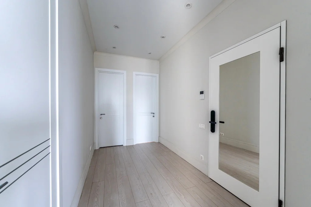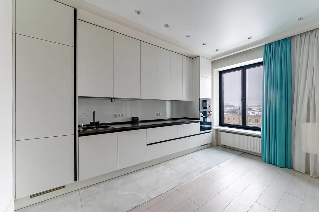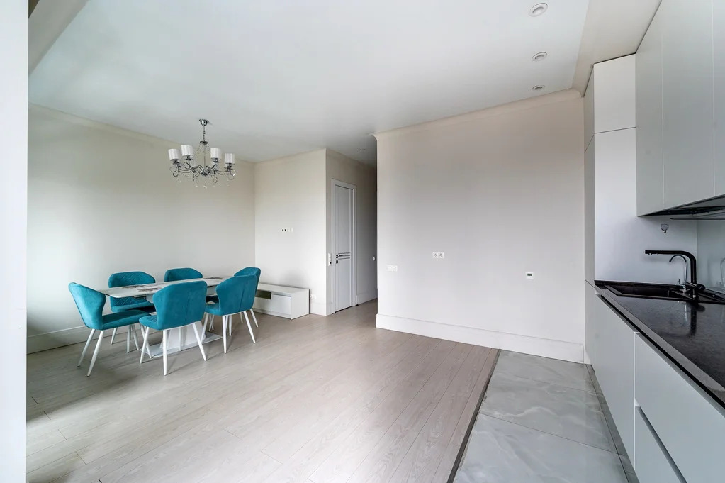 Площадь квартиры — 84 м2, потолки 3,86 м. Идеальная высота — 8 этаж из 21: отличный обзор города, окна на разные стороны дома.