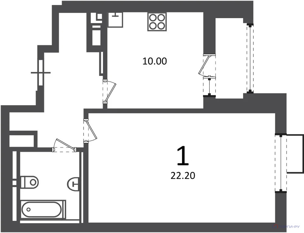 Площадь жилая: 22,2 м