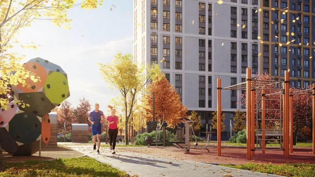 Комплекс Лучи благоустроен дворами без автомобилей, современными детскими и спортивными площадками и отапливаемыми подземными паркингами.