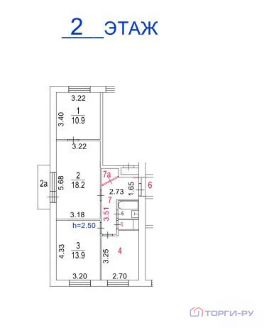 Высота потолков: 2,50 - 2,50 м
