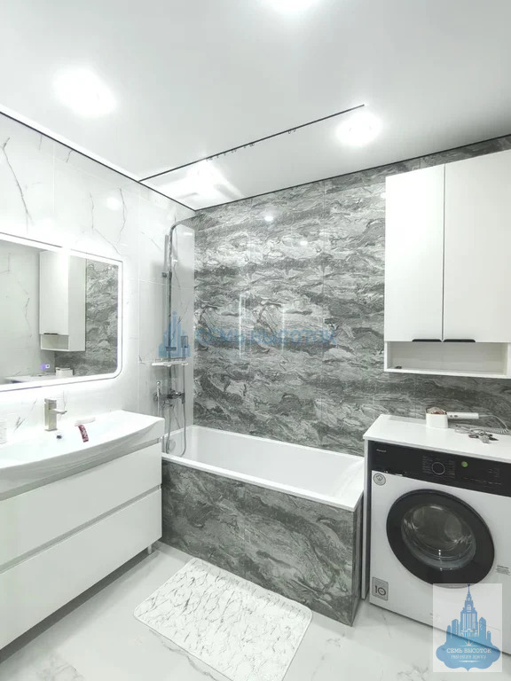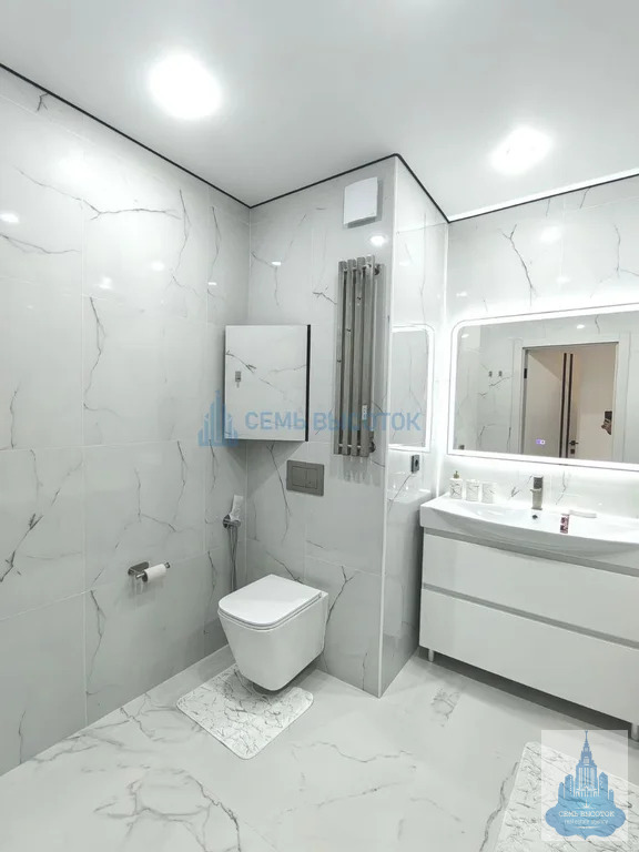 Просторный сан.узел оборудован всем необходимым – ванна литой мрамор, зеркало с подсветкой и функцией обогрева, теплые полы, гигиенический душ, тропический душ, водонагреватель!