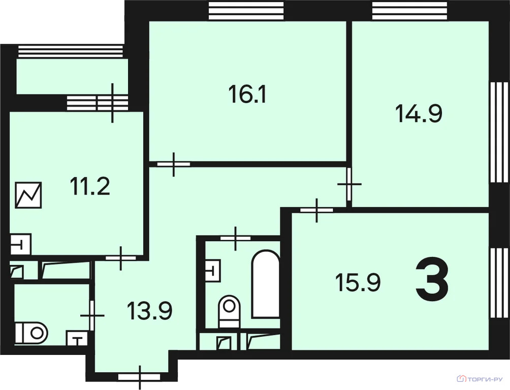 Количество комнат: 3