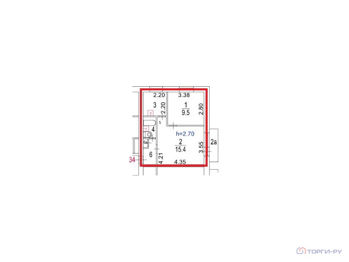 Высота потолков: 2,70 - 2,70 м