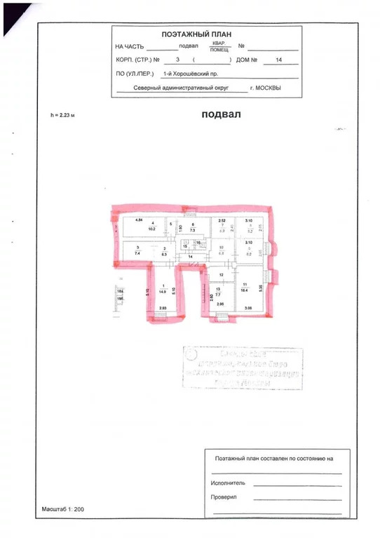 По комнатам: 16, 4+14,9+10,2+8,2+8,2+7,7+7,4+7,3+6,2+14,4 м2. Потолки — 2.23 м.