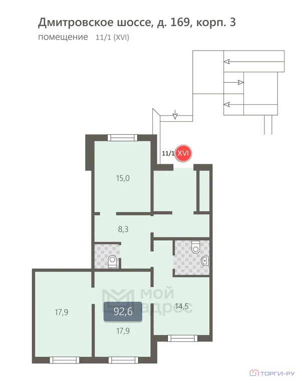 Нежилое помещение, 92,6 м | СВАО, р-н Северный, Дмитровское ш., д. 169, корп. 3, этаж 1, помещение 11/1 (XVI) | Метро: Физтех (пешком 19 мин., транспортом 19 мин., расстояние 1.3 км)