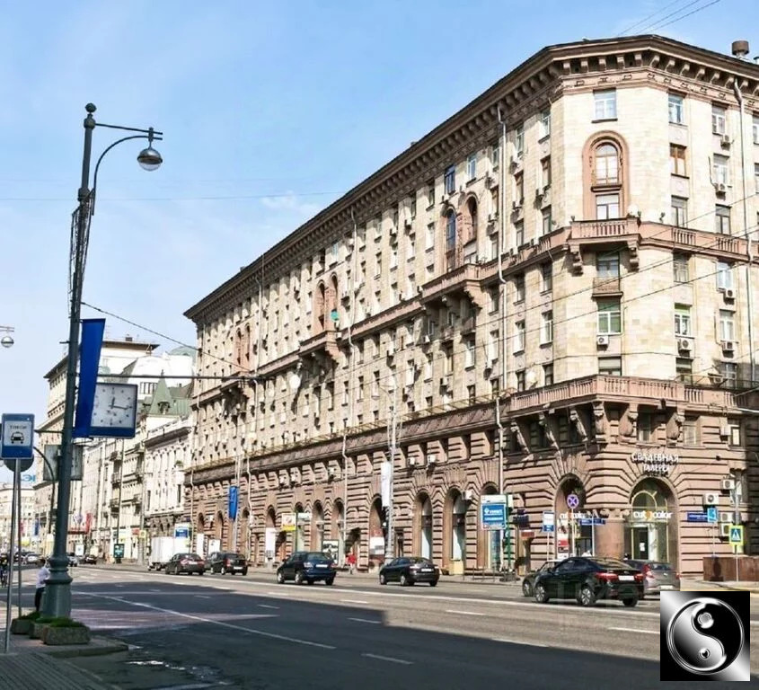 Сталинский дом на огороженной территории, панорамный вид на Тверскую
