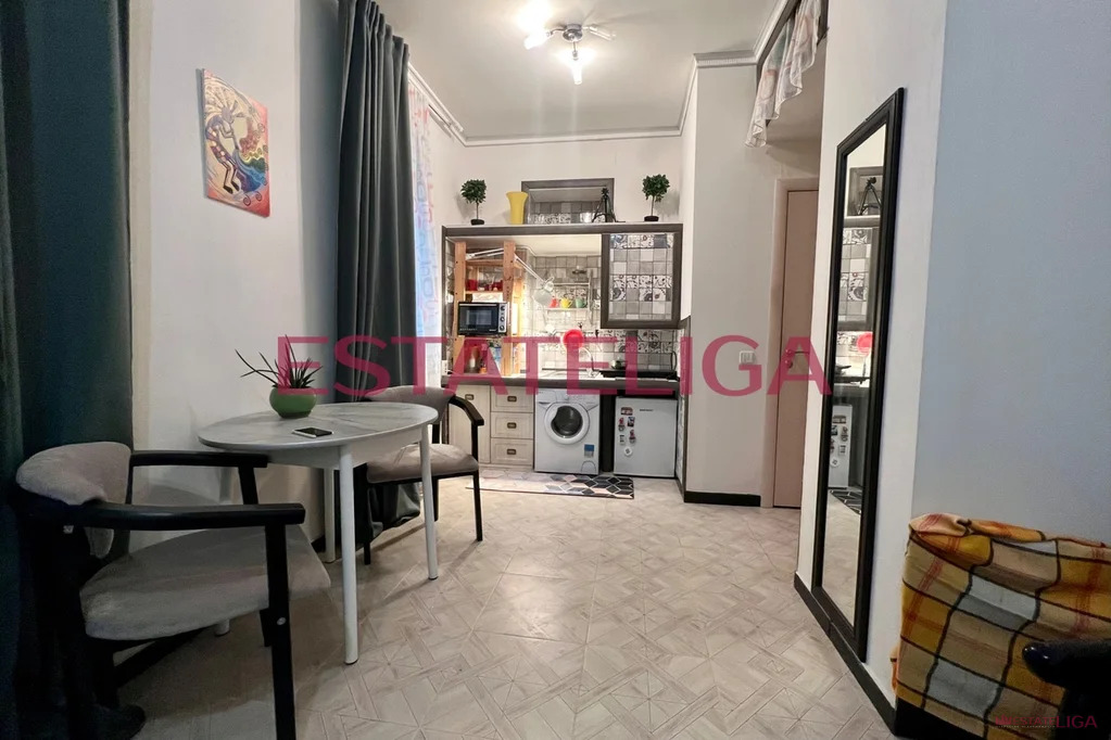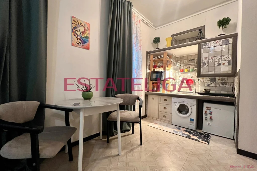 В студии есть все необходимое для жизни: холодильник, стиральная машина, варочная панель, микроволновая печь.