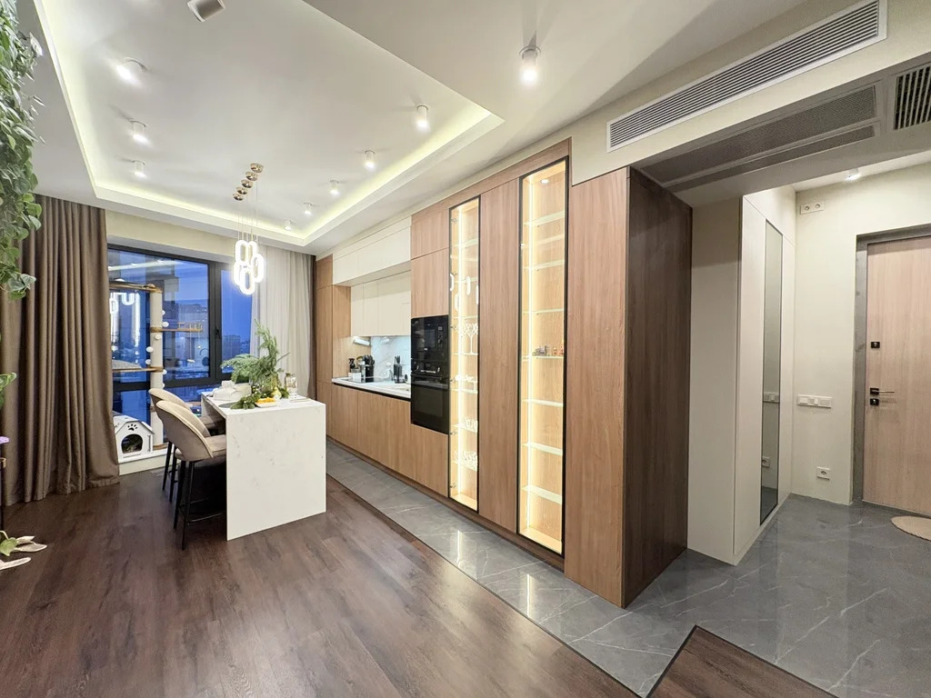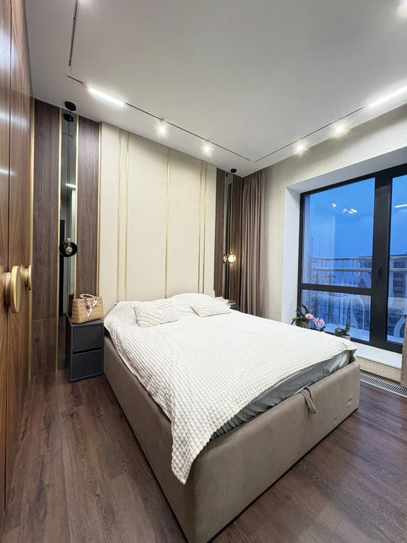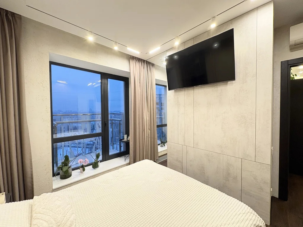 Сдается двухкомнатная ("евротрехкомнатная") квартира с дизайнерским ремонтом в ЖК Wellton Towers. Ремонт делали с вниманием к деталям. На длительный срок от года. Кухня-гостиная, отдельно спальня, отдельно детская/кабинет. Полностью укомплектована всей мебелью и всей бытовой техникой. Кондиционер, шторы с электроприводом, посудомоечная машина, стиральная машина, TV, микроволновая печь и т.д. На фото все видно. Совмещенный с/у с полноценной ванной. Потрясающие виды на Москву из окон и с двух балконов.