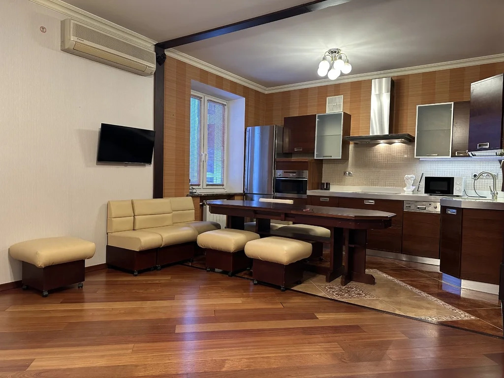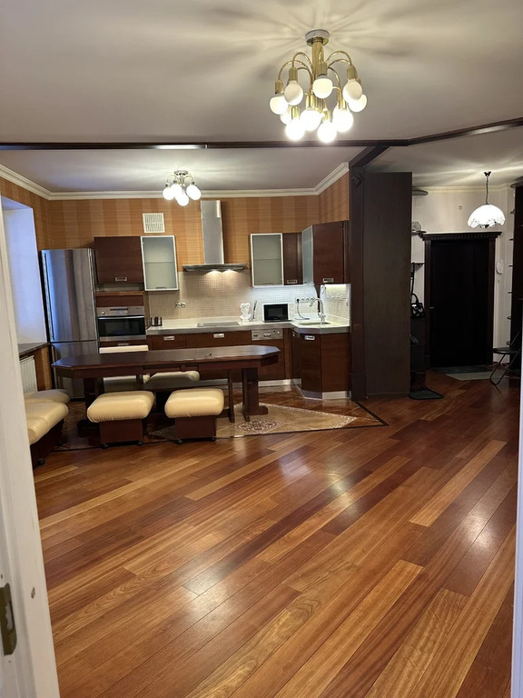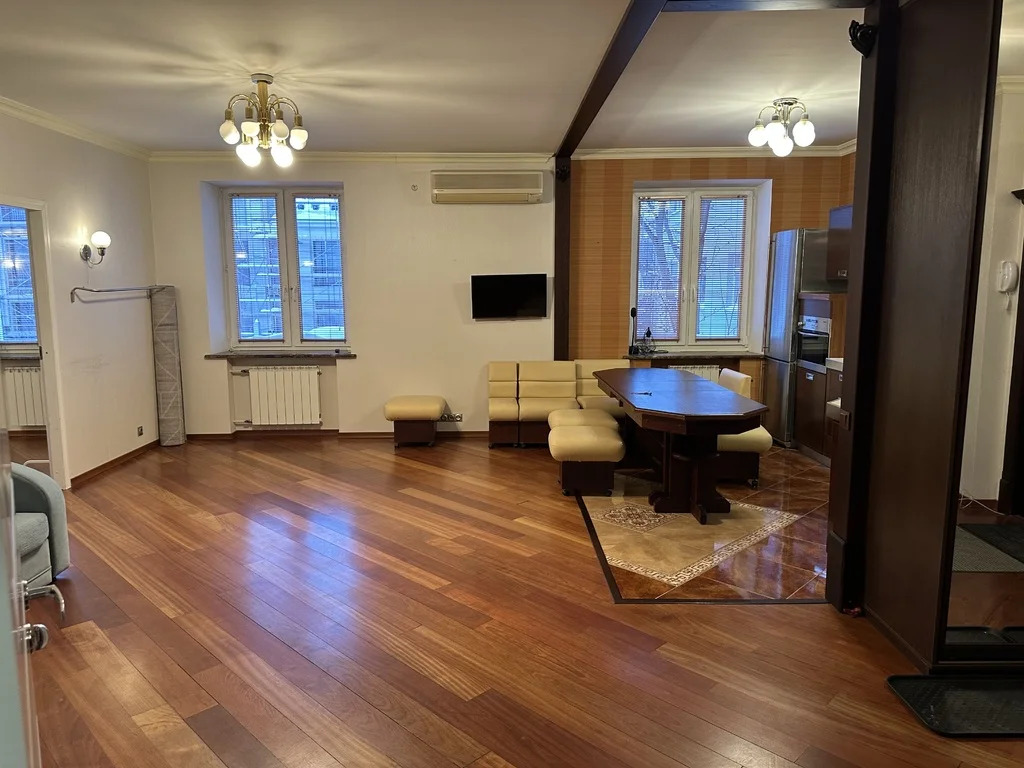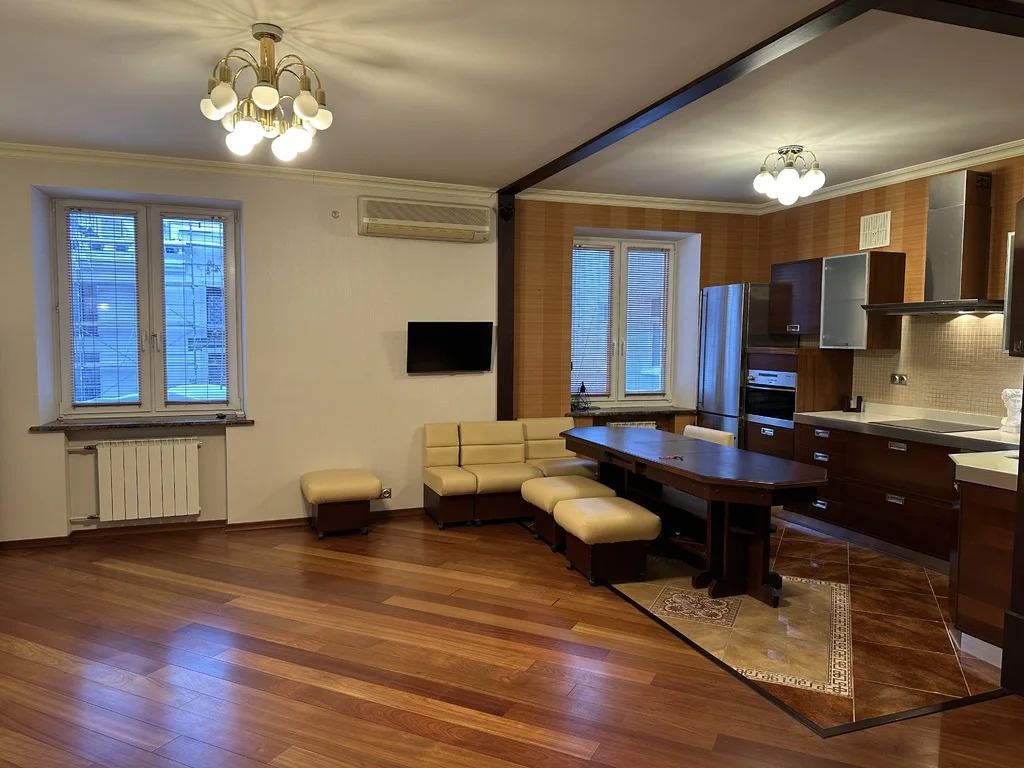 Просторная Трехкомнатная квартира Общ.площадь 86 кв.м, окна Стеклопакеты с мраморными подоконниками, два кондиционера в Гостиной и в Спальне, потолки 3 метра, полы - натурального красного дерева в прекрасном состоянии, Кухня, совмещенная с Гостиной - 32 кв.м, и две Спальни - 20 и 18 кв.м изолированные, в Кухне- Гостиной- Студии - Диван, стол обеденный большой, Кухонный встроенный гарнитур с единой столешницей, посудомоечная машина Miele, индукционная варочная четырехконфорочная панель, вытяжка над плитой с подсветкой, Холодильник двухкамерный Miele, печь СВЧ, ТВ ЖК на стене и кондиционер, работающий на охлаждение, в Комнате 20 кв.м - Спальня - Кровать двухспальная, Стенка со шкафами, комод, торшер, новый кондиционер, работающий на обогрев и охлаждение, в Комнате 18 кв.м - вторая спальня - Кровать двухспальная, Шкаф двухстворчатый, зеркало напольное, торшер, Дом кирпичный старинный постройки 18 века, памятник архитектуры и культурное наследие Москвы, в нем жили поэты и видные деятели культуры, поэтессы Ахматова, Цветаева, семья Ардовых. В 2023 году был капитальный ремонт дома ( Фасад здания, подьезд и инженерные коммуникации), в 2025 году был замене лифт, окна в тихий зеленый двор, вся инфраструктура Центрального округа столицы, 3 мин.пешком м.Третьяковская, 5 мин.пешком м.Новокузнецкая, 15 мин.пешком до Кремля, рядом Третьяковская Галерея, элитная школа, детский сад, кафе, рестораны, Набережная, Бойлер в ванной на случай отключения горячей воды, Интернет МТС, закрытый двор с местами для парковки, электроэнергия по счетчикам и Интернет оплачиваются отдельно. Сдаю на очень длительный срок, отличная хозяйка. Без комиссии для Арендатора. Ключи на руках, Показ и заселение оперативно.